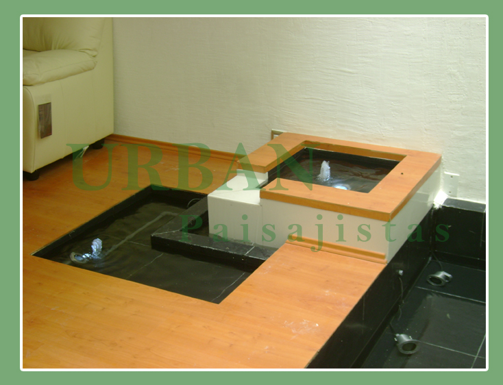 Fuente para una terraza en un 5º piso incluyendo chorros de agua y muro llorón.